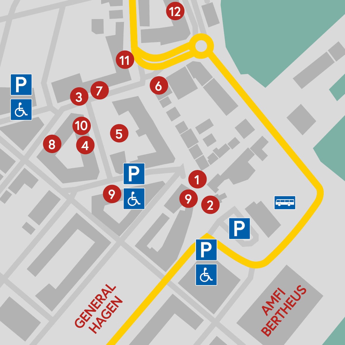 På kartene under ser dere noen av parkeringsplassene som også har egne handikap-plasser.